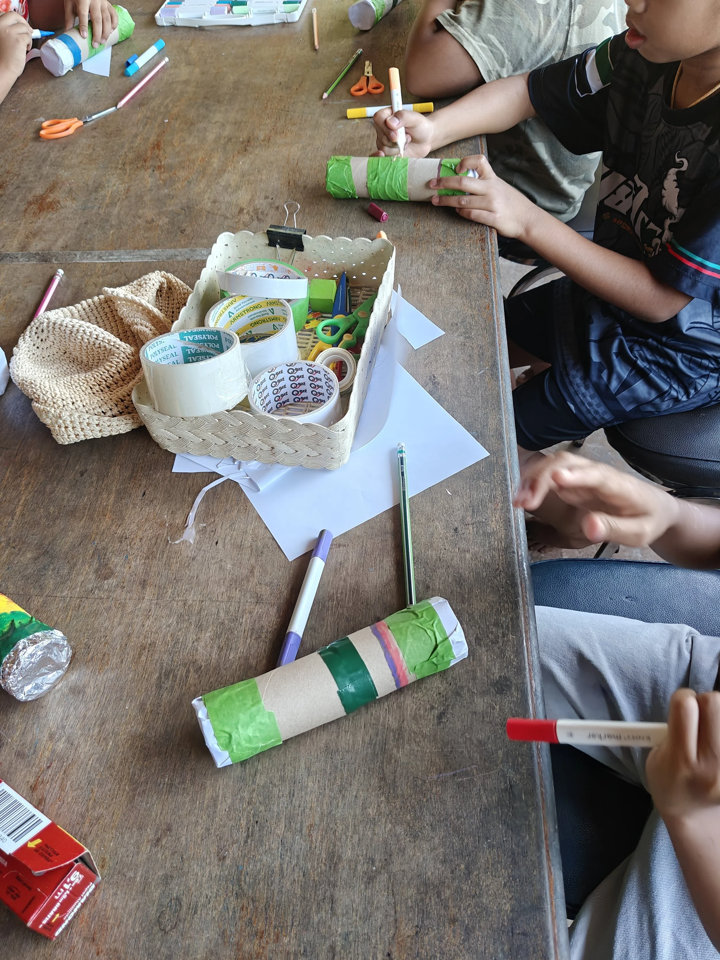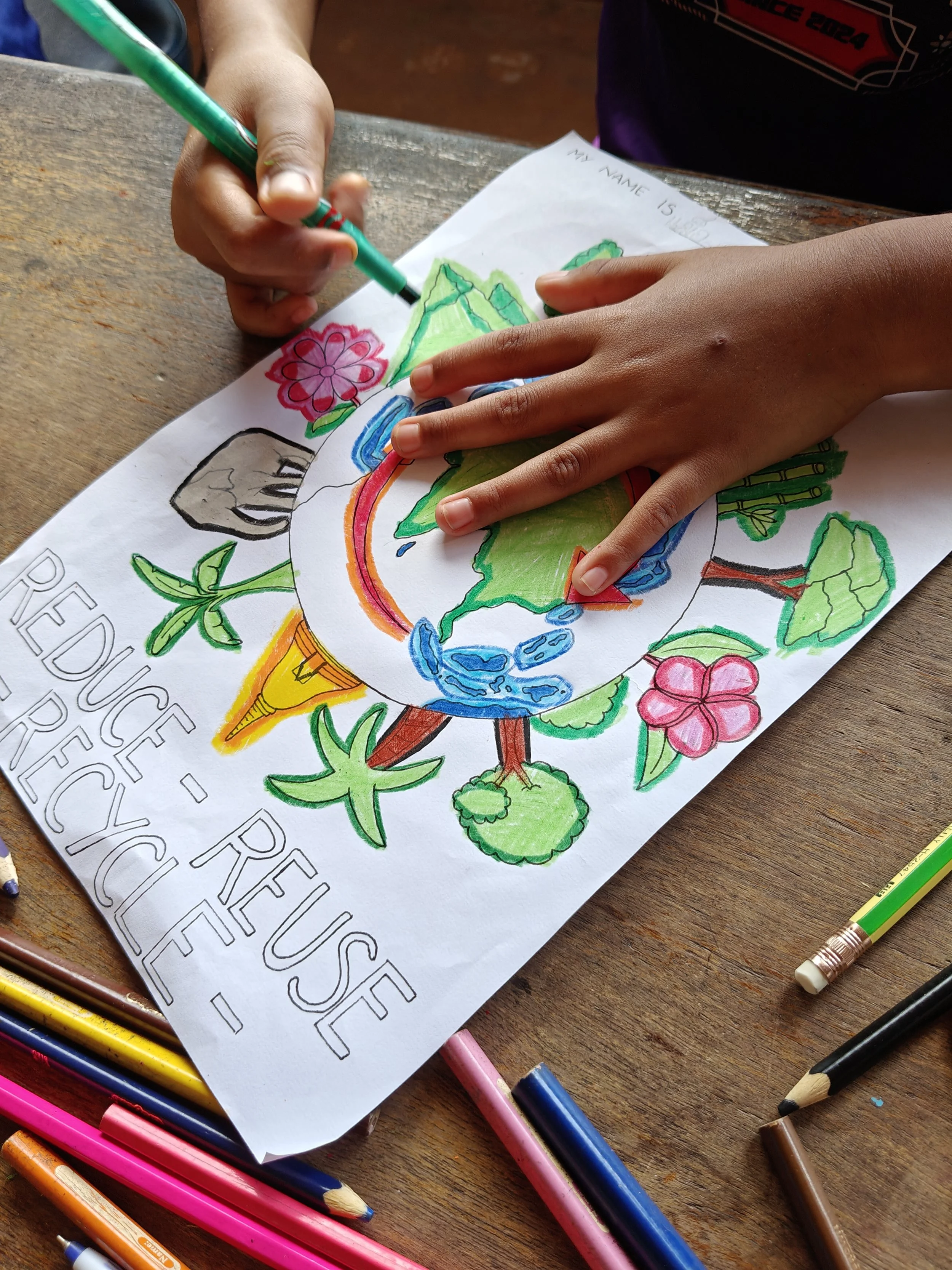 During my artist residency in Thailand, I taught rural children aged 6-12 years old; some with complex needs. Although the lessons covered a variety of media, the children’s deep obsession for colouring-in meant I was often enlisted to hand-draw colouring sheets on the fly!